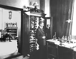 The Cassella dye factory was the largest employer of Fechenheim, employing around 3,000 people by 1914, and was the world's largest producer of synthetic dyes by the turn of the century. In 1900, Arthur Weinberg established a pharmaceutical division of the company, and collaborated closely with his friend Paul Ehrlich, the founder of chemotherapy. In 1925, Cassella merged into the new IG Farben trust, with Cassella co-owners Leo Gans and Arthur von Weinberg joining its supervisory board. After World War II the company was reestablished as Cassella Farbwerke Mainkur AG and the rebuilding under Richard von Szilvinyi and Werner Zerweck's leadership proved very successful, making the company the "darling of the stock exchange" in the 1950s.[1] In 1951, Cassella had already surpassed its prewar production. Pharmaceutical research was reestablished in 1949 , and a new laboratory was built.[2] From 1949 the company focused increasingly on pharmaceuticals rather than its traditional primary focus, dyes. The company had around 2,000 employees by the early 1950s, and initially had the same shareholders as BASF, Bayer and Hoechst. In the mid 1950s BASF, Bayer and Hoechst bought the controlling majority with 25.1% each, while the remaining shares were owned by smaller shareholders. In 1970, Hoechst acquired the shares of BASF and Bayer.[3] The company name was changed to Cassella AG in 1978.