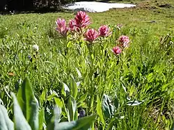 Castilleja rhexiifolia is found in subalpine meadows, particularly in wet meadows, near the edges of ponds, and amid the krummholz. Their habitat extends above timberline into wet areas of the mountain tundra.[20][21] The altitude range for the species is from 1800 to 4000 meters in elevation.[3]
