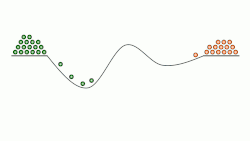 Surface binding energy oscillation also occurs to different extent with the various chemical surface species as defined by the γi-j parameter. For any non-unity γi-j system, the asymmetry in the surface energy profile results in conducting work to bias the reaction to a steady state away from equilibrium.[10] Similar to the controlled directionality of molecular machines, the resulting ratchet (device) energy mechanism selectively moves molecules through a catalytic reaction against a free energy gradient.[11]