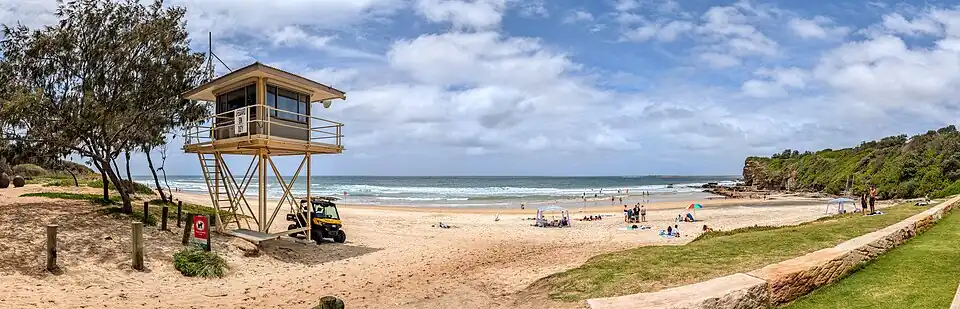 To the north is Swansea Heads and Ham's Beach, named after a family living on a hill behind the surf lifesaving club. The rocky section of Ham's is dubbed Frenchie's Beach by the locals. To the south is Pinny's Beach.