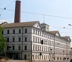 The White Factory—the seat of the museum—is a complex of classicist buildings erected by the family of Ludwik Geyer in the years 1835 – 1886.[1] It is considered one of the most beautiful and unique monuments of industrial architecture in Poland. It owes its exceptionalness to the four-wing mill, the building of the Old Boiler House in the middle of a big courtyard, a high chimney, two dust towers and two water-towers. The process of renovating and adjusting the White Factory to the museum's objectives began in 1955, when authorities took a decision to designate it as the future location of the museum.