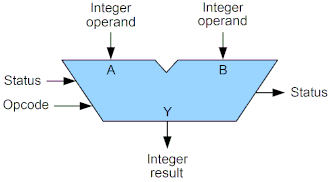 Symbolic representation of an ALU and its input and output signals