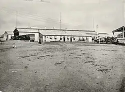 This station (one wooden platform in a corrugated iron shed), called "Sydney Terminal", had Devonshire Street as its northern boundary.[7] It was frequently but unofficially called "Redfern Station",[9] while at that time, the present Redfern Station was officially called "Eveleigh".[10] Although called "Redfern Station", the first and second Sydney Terminals were never actually located in Redfern, being to the north of Cleveland Street, which is Redfern's northern boundary.