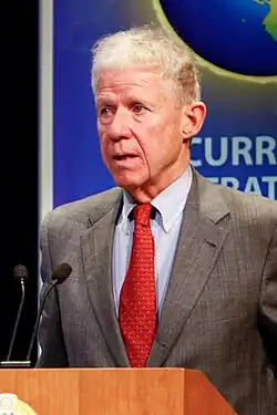Morton Charles Hill (April 28, 1936 – March 27, 2021) was an American diplomat and academic. He served as diplomat-in-residence and lecturer in international studies at Yale University.[1] A career foreign service officer, Hill was a senior adviser to George Shultz, Henry Kissinger, and Ronald Reagan, as well as Boutros Boutros-Ghali, the sixth secretary-general of the United Nations.