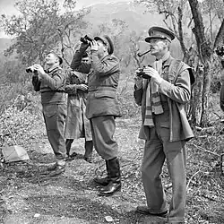 In December 1943 he exchanged commands with Major-General Vyvyan Evelegh, the General officer commanding (GOC) of the 78th Infantry Division, which had fought alongside the 6th Armoured in Tunisia was then serving in Italy, and which became his first infantry command. He was awarded the Distinguished Service Order in August 1944 and his success as a commander of both armoured and infantry divisions led to his promotion in August 1944 to acting lieutenant-general[28] when he was given command of the British Eighth Army's V Corps, succeeding Lieutenant General Charles Allfrey, in Italy. At the age of 43 he was the youngest officer in the British Army during the Second World War to command a corps in action.[29] Toby Low, the youngest brigadier in the British Army, was Keightley's Brigadier General Staff (BGS). He commanded this corps during Operation Olive, the offensive on the Gothic Line in the autumn of 1944, and also during the final spring offensive in April 1945, when it took a lead role in forcing the Argenta Gap. The corps moved into Austria with the surrender of the German Forces and forces that were fighting on the German side. On 8 May 1945, he signed a demarcation agreement with the Bulgarian First Army commander, General Vladimir Stoychev in Klagenfurt.