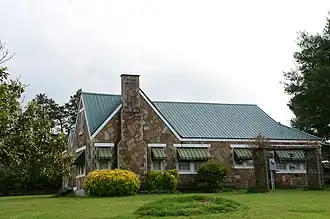 The Charlie Hall House is a historic house located at 221 Old United States Route 65 in Twin Groves, Arkansas. It is a single story masonry structure, built out of fieldstone with concrete and cream-colored brick trim. Its roofline has an irregular assortment of gables, with a front-facing gable featuring a chimney at its center. Built around 1938, it is the first known area house completed by Silas Owen, Sr., a local master mason. The coursing and layout of its stonework are one of Owens' highest quality works.[2]