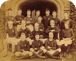 As well as athletics, Monypenny also joined the Cambridge University rugby team. Although never achieving a 'Blue' for facing Oxford in the Varsity Match, he retained his connection with the sport after leaving university, joining Bath[7] In the 1891–92 season Monypenny accepted an invitation to play for newly formed touring team the Barbarians[8] and he also turned out for Scottish exiles team London Scottish. His younger brother, Douglas, also played for London Scottish and was capped three times for the Scotland national rugby union team.