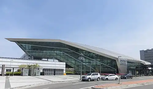 It is situated near the entrance of the Incheon International Airport Expressway. It has an unusual design: the first building is built for access to the station, and the second building, which houses the platforms, is connected to the first building with a skybridge. It was opened in 2014.[1]