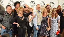 Season three China Beach cast (left to right): Ned Vaughn (Jeff Hyers), Ricki Lake (Holly Pelegrino), Michael Boatman (Sam Beckett), Dana Delany (Nurse Colleen McMurphy), Brian Wimmer (Boonie Lanier), Marg Helgenberger (K.C.), Jeff Kober (Dodger), Nancy Giles (Frankie Bunsen), Concetta Tomei (Lila Garreau), and Robert Picardo (Dr. Richard)