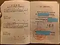 The Form "97-2" ordinary Chinese passport is a machine-readable passport, and issued in February 1997. In "97-2", personal data is on the inside front cover along with a coloured photo printed with inkjet printer, with a protective film covering most of the data page. Details include: