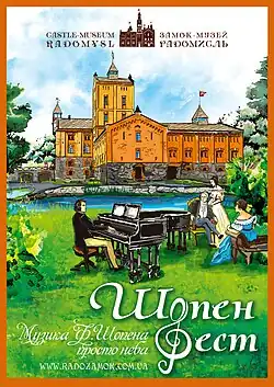 Chopin Music In The Open Air or Chopin Fest is an annual international festival of music of Polish composer Frederic Chopin (1810-1849). It is held in a historical and cultural complex The Radomysl Castle (Radomyshl, Zhytomyr region, Ukraine), in 2014.[1]