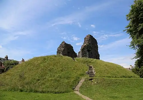 The Constable's House standing adjacent to the castle was added at around 1160, and is a rare and notable example of a Norman domestic dwelling.[1] Today the bailey is home to a bowling green and gardens, and the ditch has been filled in, but parts of the keep and much of the Constable's House still stand. The site is managed by English Heritage.