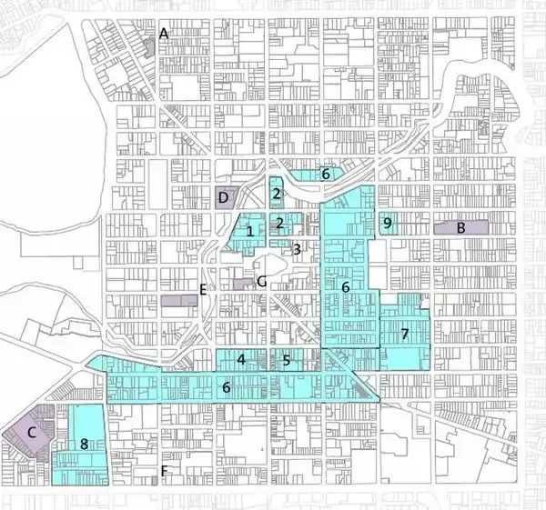 - ^ The Residential Demonstration Project is shown as number 9 on the designation plan.
