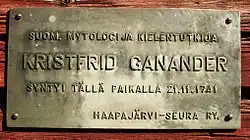 Christfried[a] Ganander (21 November 1741 in Haapajärvi – 17 February 1790 in Rantsila) was a Finnish compiler of folk culture, a priest and lexicographer. Ganander's greatest achievement was the compilation of the first fully extensive Finnish-language dictionary which was, however, unpublished. He was also a collector of folk culture well before Elias Lönnrot. His most well-known published work is Mythologia Fennica in 1789, a reference book of folk religion. He also published some poetry and worked as a teacher.