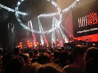 A Christian music festival (also known as a Jesus music festival or simply a Jesus festival) is a music festival held by the Christian community, in support of performers of Christian music. The festivals are characterized by more than just music; many feature motivational speakers and evangelists, and include seminars[1] on Christian spiritual and missions topics, service, and evangelism. They are often viewed as evangelical tools, and small festivals can draw 10 times the crowd of traditional revival meetings.[2] While the central theme of a Christian festival is Jesus Christ, the core appeal of a Christian music festival remains the artists and their music.[3][4][5] Critics point out that the dichotomy of business and religious interests can be problematic for Christian festivals. In similar ways as the Christian music industry in general, festivals can be drawn away from their central theme and gravitate toward commercialization and mainstream acts in an attempt to draw crowds.[1][6][7][8]