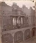 The earliest royal structure he built here was the Royal courtyard or 'Rai Angan',[11][12][13] which was the beginning of the building of the City Palace complex. The court was built at the location where the hermit had advised Maharana to build his new capital.[10][11][12][13][14]