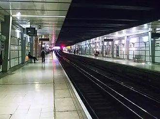 Before Holborn Viaduct station closed, a new line between Blackfriars and the tunnel was constructed on a different alignment slightly to the east and at a lower elevation, providing the opportunity to build 600,000 square feet (56,000 m2) of office space above the new station on a 4-acre (1.6 ha) site.[14] City Thameslink was built to replace Holborn Viaduct station and is partly on the site of the old station. The total cost was estimated at £360–£450 million.[15][14] Because of a proposed routing for the second phase of the Jubilee line through the area, part of the station was built to allow for a future interchange.[16]