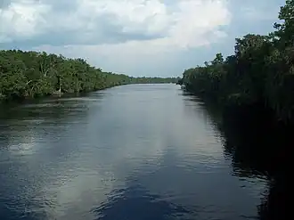![]() Suwannee River, looking in the direction of City of Hawkinsville | |