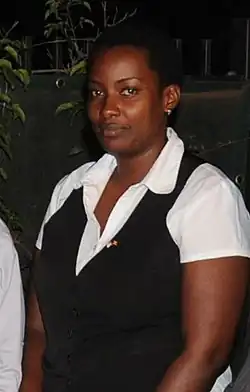 Clare Byarugaba is a Ugandan LGBT activist in Kampala who has spoken out against the government's anti-LGBT rhetoric.[1] She is the co-coordinator of the Civil Society Coalition on Human Rights and Constitutional Law.[2] In 2013, Byarugaba was set to start a Kampala chapter of PFLAG to support relatives of LGBT persons in a country whose president banned homosexuality.[1] After this ban, she was outed by a national tabloid that put her face on its cover, threatening her life.[3] In 2014, Byarugaba joined the Women in the World summit to share her personal story through the organization's mission to give women voice and agency.[3] Byarugaba was the 2014 Oak Fellow with the Oak Institute for the Study of International Human Rights at Colby College.
