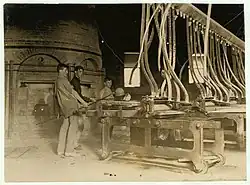 Hazel Atlas glass plants in West Virginia included one along the Tygart River in Grafton (1916–60) that largely produced wide-mouth canning jars, and the world's largest tumbler factory in Clarksburg (1902–87). By 1920, the Clarksburg factory had 15 acres of floor space, employed 1,200 people, and shipped all over the world. The company's metal factories in Wheeling made lids and closures for glass containers.[40]