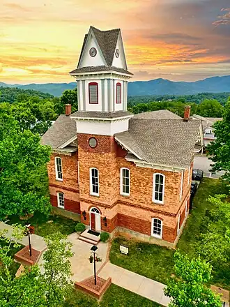 The Clay County Courthouse is located on Main Street in Hayesville, Clay County, North Carolina. The T-shaped two-story brick building was built in 1888, and is a prominent local example of vernacular Italianate architecture. Its most visible feature is a three-story square tower, which projects for half its width from the main facade, and through which entry to the building is gained.[2]