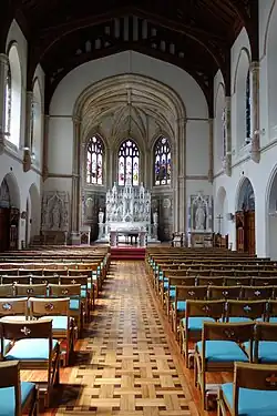 The Boys' Chapel has an elaborate reredos, a large pipe organ in the gallery, and a sequence of Stations of the Cross painted by Sean Keating. School tradition has it that the portrait of Pontius Pilate in the 12th station was based on the school rector, who had refused to pay the artist his asking price.