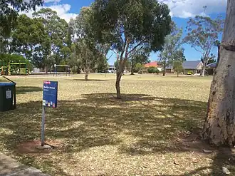 Byron Avenue Reserve, which resides next to the old Clovelly Park Scout Hall on Byron Avenue, encompasses 0.49 hectares which are in the process of being revegetated with pre-European flora.[28] The reserve contains 200-year-old river red gums, and used to include Viaduct Creek before the creek was built over as part of the Chrysler/Mitsubishi development.[29]