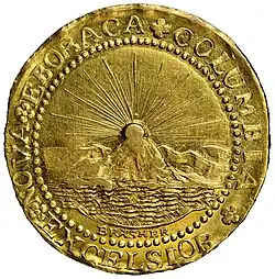 In April 2020, the 2021 state budget was passed, modifying the coat of arms to include "E Pluribus Unum" as a secondary motto beneath "Excelsior".[1][9] The state seal and flag were also updated to reflect the change.[10][11]
