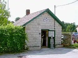 Coboconk is one of several places (including Tweed, Ontario and Creemore, Ontario) which lay claim to be the home of Canada's smallest jail,[24] a claim which it promoted on the welcoming sign on the south side of the village. At 4.57 m by 8.84 m (26.68 m2), it is certainly amongst the smallest jails in North America. However, the absolute distinction belongs to the jail house in Rodney, Ontario, which measures just 4.5 m by 5.4 m (24.3 m2).[25] The Coby Jail has 2-foot-thick (0.61 m) limestone walls mined from the local quarry. These along with the iron bars remain unchanged since the construction of the jail in 1884.[26] Inside the jail were two cells, in addition to the wardens office. The sole constable of the jail, Joseph Wakelin, was appointed in 1899 and retired in 1922.[27]