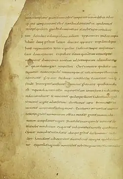 The Codex Agobardinus is a 9th-century parchment codex containing a collection of the works of the Christian author Tertullian.[1][2] It is named after its first owner, the archbishop Agobard, who gave it to Lyon Cathedral, where it remained until the mid-16th century. It was damaged at some point, and the end is missing. The missing parts are revealed by the table of contents in the front. It currently resides in the Bibliothèque nationale de France in Paris, now Latin 1622.