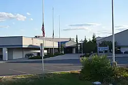 Coeur d’Alene High School is a four-year public secondary school in Coeur d'Alene, Idaho, the oldest secondary school (founded 1903), with its current building at 5530 North Fourth Street built in 1968-1969. It is one of the two traditional high schools in the Coeur d'Alene School District #271. It serves the northeastern half of the district,[4] with students from the cities of Coeur d'Alene, Dalton Gardens, Hayden, and a portion of unincorporated Kootenai County.[5] The school colors are Blue and White and the C.D.A.H.S. mascot is a "Viking" and the athletic teams are named the "Vikings".