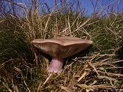 | Field blewit (Collybia personata) in its natural habitat | |