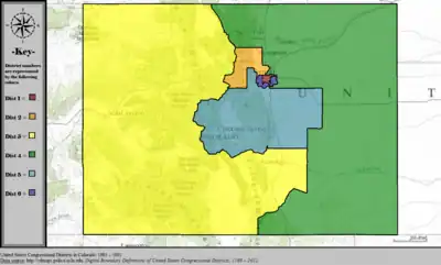 Table of United States congressional district boundary maps in the state of Colorado, presented chronologically.[7] All redistricting events that took place in Colorado between 1973 and 2013 are shown.