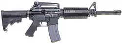 The M4 carbine (officially Carbine, Caliber 5.56 mm, M4) is an assault rifle developed in the United States during the 1980s. It is a shortened version of the M16A2 assault rifle. The M4 is extensively used by the US military, with decisions to largely replace the M16 rifle in US Army (starting 2010) and US Marine Corps (starting 2016) combat units as the primary infantry weapon[7][8] and service rifle. The M4 has been adopted by over 60 countries worldwide,[9] and has been described as "one of the defining firearms of the 21st century".[10]