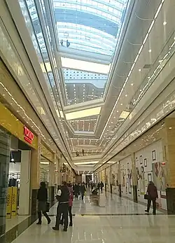 The architect for the second building project was C Concept Design in the Netherlands.[5] The design concept for the project was a super regional mall with a primary focus on the leisure and entertainment component including a 15 screen Kinomax (the second largest in Russia and has an IMAX theater), an ice rink and children's zone. The center contains a "deluxe" retail floor with two level shops and 9.5m high shop fronts. The general contractor for the project was Renaissance Construction and Cushman & Wakefield were the exclusive consultant.[6]