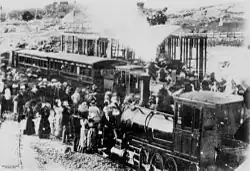 The first railway built in Queensland ran from Ipswich to Dalby. This line was opened to Bigge's Camp (now Grandchester) on 31 July 1865. It extended to Gatton in 1866 through multiple tunnels including the Victoria Tunnel, to Toowoomba in 1867 and to Dalby in 1868.[5] The railway was extended from Ipswich to Brisbane in 1876.[6] The line from Dalby had been extended to Chinchilla in 1878, Roma in 1880, Charleville in 1888 and Cunnamulla in 1898.