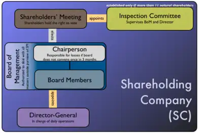 The management structure consists of a shareholders' meeting (SM), a board of management (BOM), a director and an IC.[17]