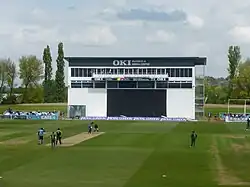 In early 2010 a large 1800 seat stand was erected at the Racecourse End of the ground.[3] This stand was taken down in late 2015 in order to make way for a new £2.2 million four-storey media centre, which was completed and officially opened in September 2016. Some 1100 seats were immediately reinstated at the Pavilion End of the ground, with the remaining reinstated next to the new media centre. In February 2017 Derby Civic Society awarded a commendation in the category of Best New Build of 2016 to Derbyshire County Cricket Club for the new media centre.