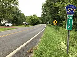 County Route 579 (CR 579) is a county highway in the U.S. state of New Jersey. The highway extends 37.24 miles (59.93 km) from John Fitch Parkway (Route 29) in Trenton to Route 173 in Greenwich Township.