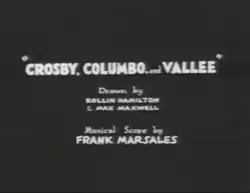 Crosby, Columbo, and Vallee is a 1932 Warner Bros. Merrie Melodies cartoon short directed by Rudolf Ising.[1] The short was released on March 19, 1932.[2] It lampoons the popularity of crooners among young women, with popular crooners Bing Crosby, Russ Columbo, and Rudy Vallée being the namesake of the film.