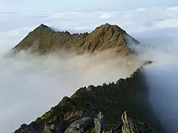 Cruach Mhór (Irish for "big stack"),[2] at 932 metres (3,058 ft) high, is the tenth-highest peak in Ireland on the Arderin list, and the eleventh-highest peak in Ireland according to the Vandeleur-Lynam list. A distinctive square grotto marks the summit. It is part of the MacGillycuddy's Reeks in County Kerry.