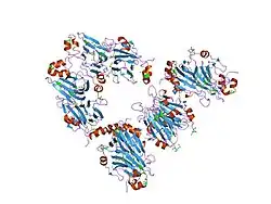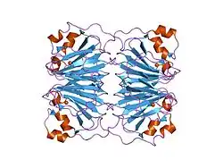 The cupin superfamily is a diverse superfamily of proteins named after its conserved barrel domain (cupa being the Latin term for a small barrel). The superfamily includes a wide variety of enzymes as well as non-enzymatic seed storage proteins.[1][2]