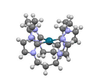 Cyclic iron tetra N-heterocyclic carbenes are a family of organometallic complexes that are unique in their steric and electronic tunability. This is because the iron is linked directly to four carbon atoms in its equator which belong to the highly tunable N-heterocyclic carbene (NHC) ligand system. The ligands that are attached to the iron center can be modified to change the neighboring chemical environment of the iron. This allows researchers to tune the reactivity and the electronic configuration of the iron and study reaction intermediates that are relevant to important chemical conversions or can lead to new catalyst designs.[1]