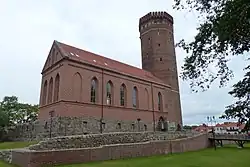 Human settlement in Człuchów dates back to prehistoric times. Several traces of the Lusatian and Pomeranian cultures were discovered during archaeological excavations within the town limits. The territory became part of the emerging Polish state in the 10th century under its first historic ruler Mieszko I. By the beginning of the 13th century, Człuchów was a small settlement located at the intersection of two trade routes. In 1312 the Teutonic Knights purchased the settlement for 250 silver marks from Nicholas of Poniec, a son of the voivode of Kalisz. The Order began constructing a fortress known as Schlochau on a hill east of the settlement; the fortress, the Order's second-largest after Marienburg (Malbork), was completed in 1367. By 1323 it was used as a komturei (bailiwick) by the crusaders and consisted of three support buildings and the main castle. The fortress was so well-developed that Grand Master Heinrich von Dusemer granted the town Kulm law in 1348. In 1454, King Casimir IV Jagiellon reincorporated the town to the Kingdom of Poland, and then the Teutonic Knights renounced any claims in the peace treaty of 1466.[3] Człuchów was a county seat in the Pomeranian Voivodeship. The seat of local starosts was located in the castle. Many Jews immigrated to the town afterward, creating an enclosed Jewish quarter in the north of the town.
