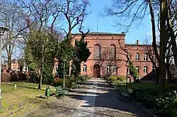 Recruitment was based on entry exams; the girls wore black uniforms with a beret and white embroidery, the tuition fee was 110 zł.[31] The mid-bourgeoisie families dominated, represented mostly by civil servants and to a lesser degree commerce.[32] There were two scouting units,[33] Sodality of Our Lady and a number of minor groups.[34] At that time Dąbrówka, initially set up as a counter-offer to a Luisian tradition, started to claim the Luisenschule heritage. Exact motives are not clear, yet it seems that the board indented to bask in prestige of a hundred-year-old institution; in 1930 the school celebrated its centenary.[35] In 1933 the establishment acquired a rural estate in Czernice in the Zielonka Forest, destination of frequent holiday trips later on.[36] The school operated until the German conquest of Poznań in 1939; initially the premises hosted Wehrmacht units, later they were handed over to Frauendienst.[37]