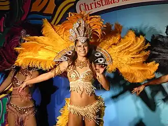 Dance is central to Latin American social life and culture. Brazilian Samba, Argentinian tango, and Cuban salsa are internationally popular partner dances, and other national dances—merengue, cueca, plena, jarabe, joropo, marinera, cumbia, bachata and others—are important components of their respective countries' cultures.[49] Traditional Carnival festivals incorporate these and other dances in enormous celebrations.[50]