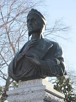 Dante Park was named for Dante Street, which itself was named for Dante Alighieri (1265-1321) a major Italian poet of the Late Middle Ages, who authored Divine Comedy, which is widely considered the most important poem of the Middle Ages and the greatest literary work in the Italian language.[1]