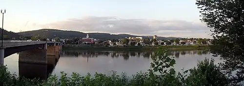Danville Historic District is a national historic district located in Danville, Montour County, Pennsylvania. It encompasses 291 contributing buildings, 3 contributing sites, and 1 contributing object in the central business district and surrounding residential areas of Danville. The buildings mostly date from the 1840s to the early 20th century. The district incorporates the previously listed and predominantly residential Danville West Market Street Historic District. Residential buildings are mostly of brick and frame construction, with some log and stone dwellings, and in a variety of architectural styles including Italianate, Federal, Queen Anne and Second Empire. It includes the separately listed General William Montgomery House and Thomas Beaver Free Library and Danville YMCA. Other notable non-residential buildings include the Montour County Courthouse (1871), Mahoning Presbyterian Church (1853), Pine Street Lutheran Church (c. 1860), Eli Trego Building, Heim Suspender Factory (1835), First Ward School (c. 1870), Bnai Zion Temple (c. 1865), and Jemima Donaldson's Cross Keys Tavern (c. 1812).[2]
