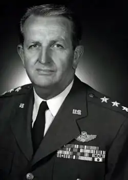 From Vandenberg, Wade was sent in April 1961 to Torrejón Air Base near Madrid, Spain, where he commanded SAC's 16th Air Expeditionary Task Force. He received his promotion to lieutenant general on August 1, 1963, and assumed command of SAC's Second Air Force with headquarters then at Barksdale Air Force Base in Bossier City, some fifty miles west of his hometown of Homer, Louisiana.[3] Then on August 1, 1966, he assumed command of the Eighth Air Force at Westover Air Force Base near Springfield, Massachusetts. As the commander at Westover, he was responsible for bombers, tankers, and missiles located south from Goose Bay, Labrador, to Ramey Air Force Base in Aguadilla, Puerto Rico, and extending westward from Loring Air Force Base in Aroostook County, Maine, to Clinton-Sherman Air Force Base near Clinton, Oklahoma.[2]