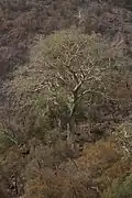 It has four dominant tree species: Juniperus procera, Olea europaea subsp. cuspidata, Buxus hildebrandtii, and Tarchonanthus camphoratus.[4] Doum Palms are found in the western part of the plain of Hanle, at the foot of Gamarré on the edge of the plain of Gagadé. The vegetation becomes more abundant with elevation. Thus the set of Day and its extension to the crest of Goda are occupied by an ancient juniper forest, ficus, mimosa, wild olive trees, boxwood, dragon trees, and other native plants.